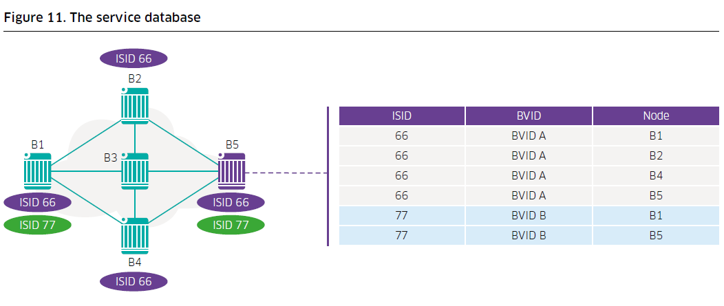 ISID (Service Instance Identifier):這是一個 24 位元的數字,用於唯一識別服務實例、租戶或 VPN。不同的 SPB 服務被分配不同的 ISID,彼此隔離。